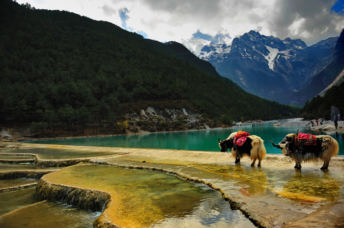 蓝月谷,其前身为早前人们所熟知的“白水河”。在晴天时,水的颜色是蓝色的,而且山谷呈月牙形,远看就像一轮蓝色的月亮镶嵌在玉龙雪山脚下,所以名叫蓝月谷。而白水河这个名字是因为湖底的泥巴是白色的,下雨时水会变成白色,所以又叫白水河。