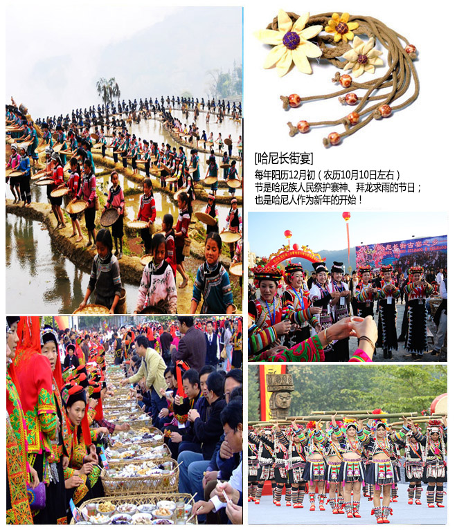早餐后,乘车前往世界遗址----元阳哈尼梯田(主要有4大景区:坝达景区包括箐口、全福庄、麻栗寨、主鲁等连片14000多亩的梯田和箐口民俗村景区老虎嘴景区包括勐品、硐浦、阿勐控、保山寨等近6000亩梯田,多依树景区包括多依树、爱春、大瓦遮等连片上万亩梯田。如此众多的梯田,在茫茫森林的掩映中,在漫漫云海的覆盖下,构成了神奇壮丽的景观。这些景区就是目前准备申报世界遗产的核心保护区。)抵达后观胜村梯田(3公里、行车10分钟)